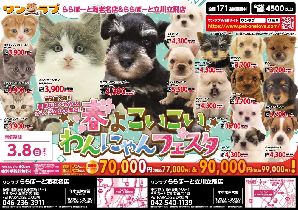 【春よこいこい☆わんにゃんフェスタ 開催!!】長崎県 ワンラブ ゆめタウン夢彩都店 フェア開催!! 2/14~3/1まで